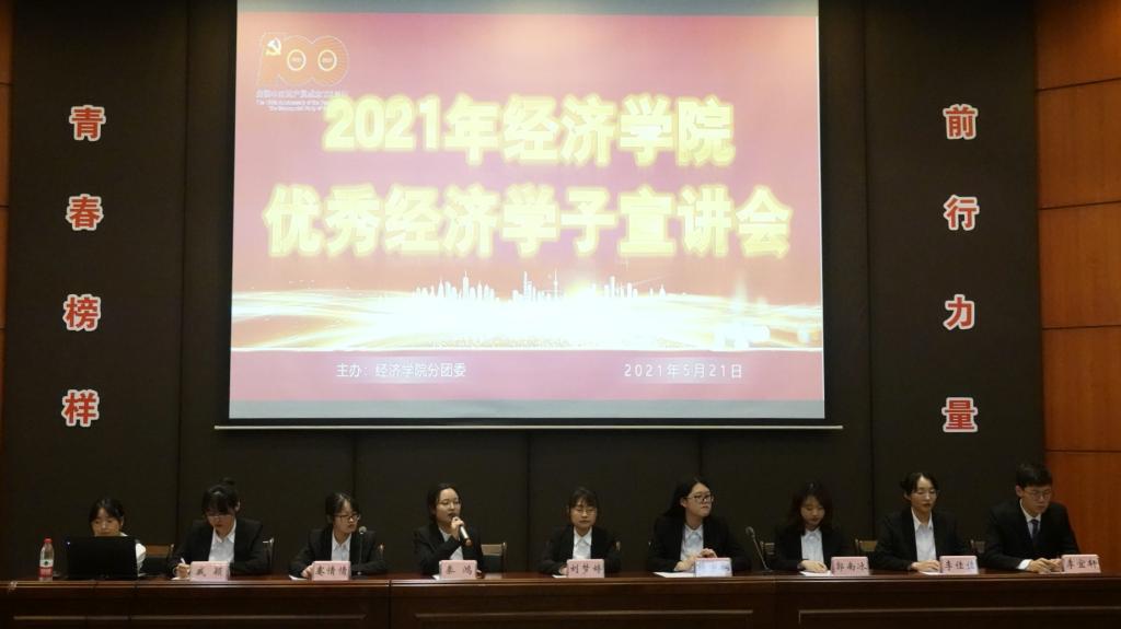 5月21日晚,“青春榜样 前行力量”优秀经济学子宣讲会于江北校区B509报告厅成功召开。太阳成集团tyc122ccvip分党委副书记、副院长王燕教授,副院长朱沙教授,学工办主任、分团委书记林新竹老师及太阳成集团tyc122ccvip、通识学院辅导员代表出席了本次宣讲会。本届“优秀经济学子”宣讲团由戚颖、蹇情情、秦鸿、刘梦婷、薛宇桐、郭南冰、李佳佳、李宜轩八位成员组成。
