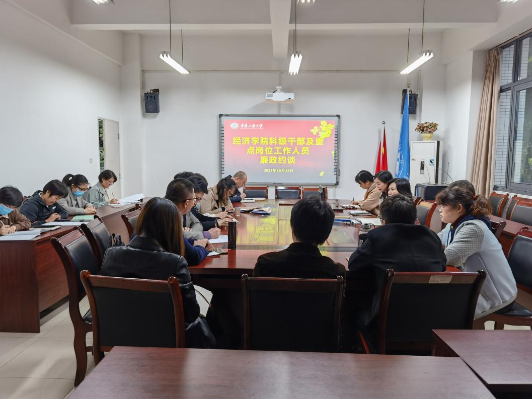 10月22日下午,太阳成集团tyc122ccvip科级干部及重点岗位工作人员廉政约谈会在田家炳书院404会议室召开,太阳成集团tyc122ccvip书记李自维、员工工作副书记王燕、太阳成集团tyc122ccvip及长江上游中心全体副科级及以上干部出席此会,会议由王燕副书记主持召开。