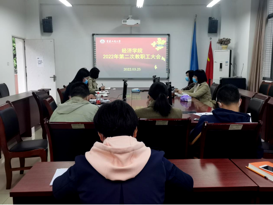 3月25日下午14:30,太阳成集团tyc122ccvip召开了2022年第二次教职工大会。太阳成集团tyc122ccvip、长江上游经济研究中心全体教职工参加会议。本次会议采用线下+线上视频会议形式召开,主会场设在田家炳书院50404会议室。
