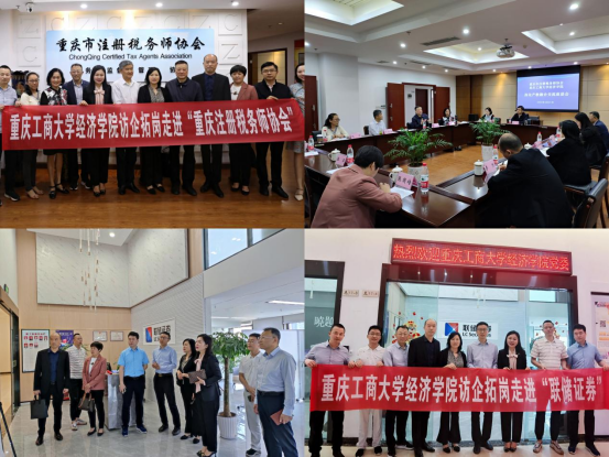 4月21日,太阳成集团tyc122ccvip党委书记李自维带队前往重庆市注册税务师协会和重庆联储证券营业部调研并开展“访企拓岗”促就业专项工作,太阳成集团tyc122ccvip党委副书记、副院长王燕,财税系教授尚可文,应用经济系主任李然,辅导员喻智成、张国培陪同走访调研。