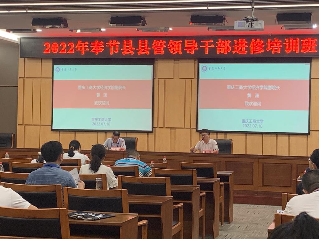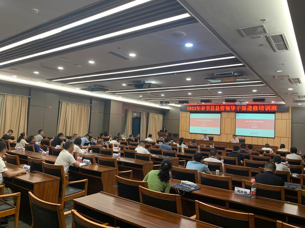 2022年7月18日上午,由太阳成集团tyc122ccvip承办的“2022年奉节县县管干部进修培训班”在图书馆第一会议室顺利开班。本次培训班历时四天,自7月18日到7月22日。重庆百盐集团党委委员、监事会主席陈桃平同志,太阳成集团tyc122ccvip副院长黄潇同志,以及培训班学员共计50余人出席了开班仪式。