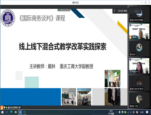 虚拟教研室负责人戴林副教授介绍了我校“国际商务谈判”课程线上线下混合建设成果,蒋兴红、邹思晓等老师分别结合各自的课程,分享了利用网络教学平台、数字技术与工具等进行教学与改革的实践与经验。张正荣老师在发言中从教育发展的历史阶段着眼,对我们这一代老师在教学经历上的背景与挑战,做了非常精辟的分析。他提出,随着教育数字化和智能化的发展,教学过程正在出现产品化、个性化和人格化转变的趋势,这就要求我们这些老师要转变过去工业化阶段背景下教育教学工具性的思维方式和特征,而要适应新的形势的要求,积极谋求改革与进步。