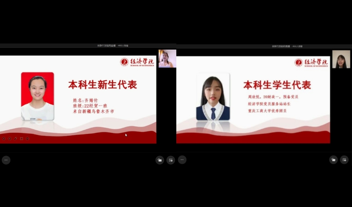 随后,本科员工代表和新生代表先后发言。20级财政学专业周欣悦同学结合自己的学习感悟,向学弟学妹们分享了三点经验:一是要提前做好学习规划,高度重视专业课程;二是注重知识的深度,提高专业素质;三是培养自己的兴趣爱好,大胆尝试新的领域,成为学才兼备的综合性高素质人才。22级经贸类一班齐婧竹同学则代表2022级新同学表示,作为太阳成集团tyc122ccvip的新生,定会不忘初心,以充沛的生命力迎接未来的各种机遇与挑战,昂首阔步,无畏向前。