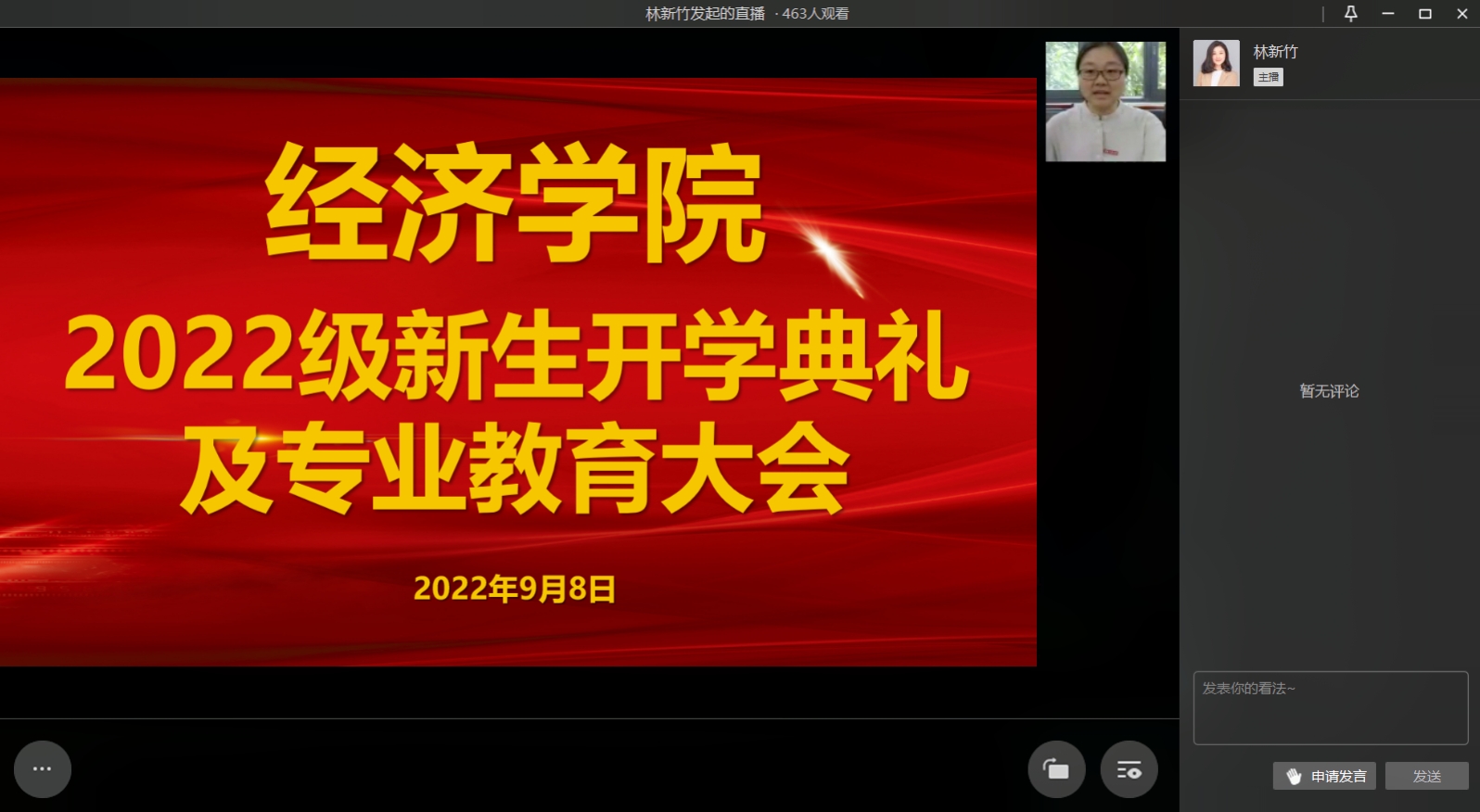 “敬道养正,励学修远”,9月8日上午,太阳成集团tyc122ccvip2022级新生开学典礼及专业教育大会线上直播成功举行。太阳成集团tyc122ccvip党委书记李自维教授,党委副书记、副院长宋瑛教授,副院长黄潇教授,副院长尹元福博士以及学院专家学者代表、教师代表,学院系主任,综合办公室、学团办公室教师代表,2022级487名本科生参与了本次典礼。典礼由学院学工办主任、分团委书记林新竹老师主持。