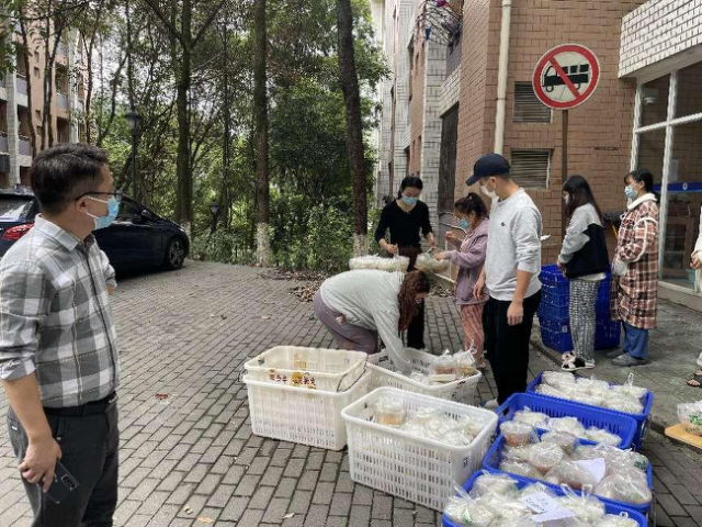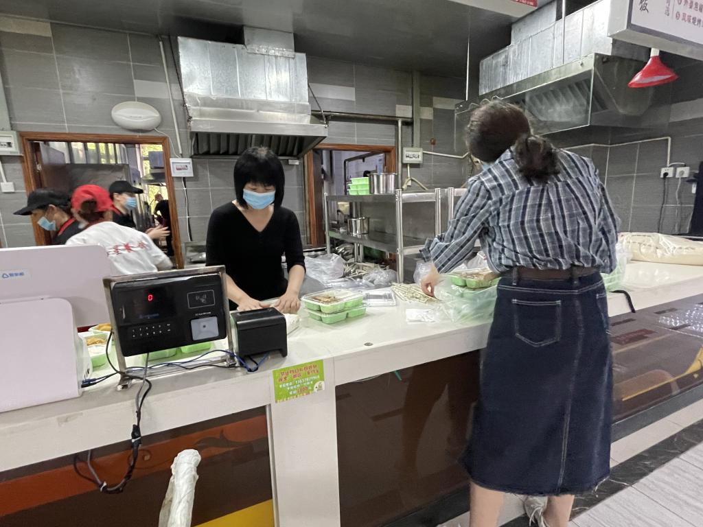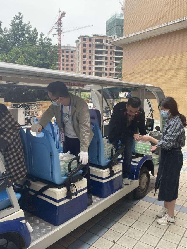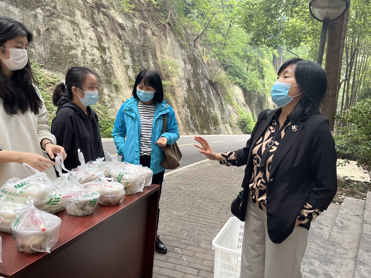 领导班子带领辅导员、志愿者全部下沉到防疫前线,积极投身疫情防控工作,分组排班参与志愿服务,快速构筑起抗击疫情的坚固防线。他们不顾自己的“小家”,义无反顾踏上了保卫“大家”的路。为了让员工能吃上一口热乎的饭菜,李自维书记、宋瑛副院长、黄潇副院长亲自带领辅导员来到食堂,卷起袖子加入了“盛饭大军”、“送饭大军”的队伍。为丰富员工的膳食营养,宋瑛副院长还亲自采购了一批零食、水果,送到各员工宿舍楼。他们用实际行动保卫员工的身体健康、践行着“敬业爱生”的铮铮誓言。