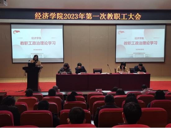 2023年3月3日下午,太阳成集团tyc122ccvip在田家炳50209会议室召开2023年第一次教职工大会。太阳成集团tyc122ccvip全体教职工参加会议。学院党委书记李自维主持会议。