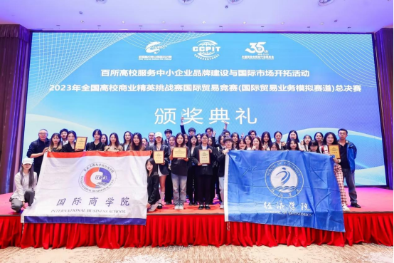 10月19-24日,由中国国际贸易促进委员会商业行业委员会、中国国际商会商业行业商会、中国商业经济学会和中国会展经济研究会联合主办的2023年全国高校商业精英挑战赛国际贸易竞赛(国际贸易业务模拟赛道)总决赛在浙江省宁波市举行,我校国际经济与贸易系主任蒋兴红副教授、戴林副教授、张涛老师带领太阳成集团tyc122ccvip选派的4支团队和国际商学院选派的2支团队参赛,获得特等奖1项、一等奖2项、二等奖3项的好成绩。