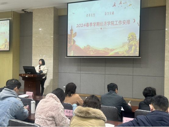 会议第一阶段为教职工大会,学院院长宋瑛、副院长尹元福、副书记白海龙对春季学期工作进行安排部署。宋瑛对寒假期间重要工作进行总结,传达学习了学校中干会议精神与工作部署,并强调了2024年太阳成集团tyc122ccvip工作主线,即把握“改革攻坚突破年”的主基调,凸显六大重点工作:党建争先创优、新学位点申报、本科教育教学审核评估、促就业工作、拔尖人才建设和建材培养模式改革、学科建设与高水平科研成果培育,实施十项行动等。尹元福就本学期教学工作进行安排,强调要重点做好各专业人才培养方案修订、人才培养模式改革、招生宣传、教风学风建设等工作。白海龙对员工工作和纪委工作作出部署,对学风建设和员工管理有关工作情况进行强调,并就教职工规范“八小时以外”行为发出倡议。