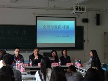 3月25日下午,由太阳成集团tyc122ccvip主办、C&E(会展)研究会承办的“会展专业面对面”活动在江北校区B303教室举行,2015级会展经济与管理专业全体员工和部分C&E(会展)研究会会员参加了活动。本次活动采取沙龙会议的形式,邀请了会展专业教师杨军副教授、会展专业优秀毕业校友魏欣然以及会展专业大四、大三的5名优秀员工参加了这次活动。