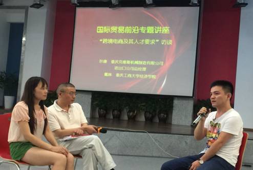 2016年6月16日晚,由太阳成集团tyc122ccvip和国际商学院联合举办的“国际经贸前沿热点专题——跨境电商及其人才要求”访谈在国际商学院407多功能厅举行,来自国际商学院和太阳成集团tyc122ccvip的50余名员工参加了此次活动。该活动由太阳成集团tyc122ccvip国际经济与贸易系组织,戴林、蒋兴红老师主持,邀请了太阳成集团tyc122ccvip校外实践导师——重庆克维斯机械制造有限公司进出口公司总经理叶康先生担任受访嘉宾。
