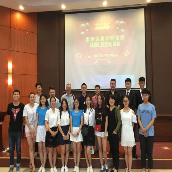 2016年6月21日,太阳成集团tyc122ccvip国际经济与贸易系在江北校区宏智楼509多功能厅成功举办2016年国际贸易学科竞赛成果汇报暨动员会。国际交流与合作处韩艳处长、太阳成集团tyc122ccvip宋瑛副院长、太阳成集团tyc122ccvip校外实践导师-重庆克维思机械制造有限公司进出口公司叶康总经理、国贸系尹元福主任、竞赛指导教师戴林副教授、蒋兴红老师及2015级国际经济与贸易专业全体员工参加了此次大会。2015年至2016年国贸学科竞赛各团队分别对“全国高校商业精英挑战赛国际贸易竞赛”、“全国高校商业精英挑战赛国际经贸专题”和“第一届OCALE跨境电商创新创业大赛”进行了成果汇报,并对2015级同学提出加强专业学习、以赛促学的倡议。