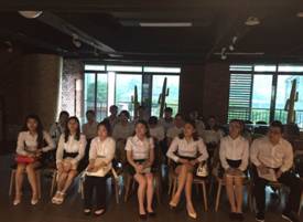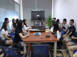 董杨经理介绍了公司企业文化,公司价值,实习安排,实习制度,以及实习部门。然后是董事长喻亮星校友发言,喻董首先表示了对大家的欢迎,然后对同学们提出了几点中肯的建议:一是勤奋才能有长足的进步,只要三年,就可以让相同起点的人走向不同的人生;二是要保持谦虚,谦虚让人更好更快的成长;三是坚持锻炼,良好的身体条件是事业进步的基石。