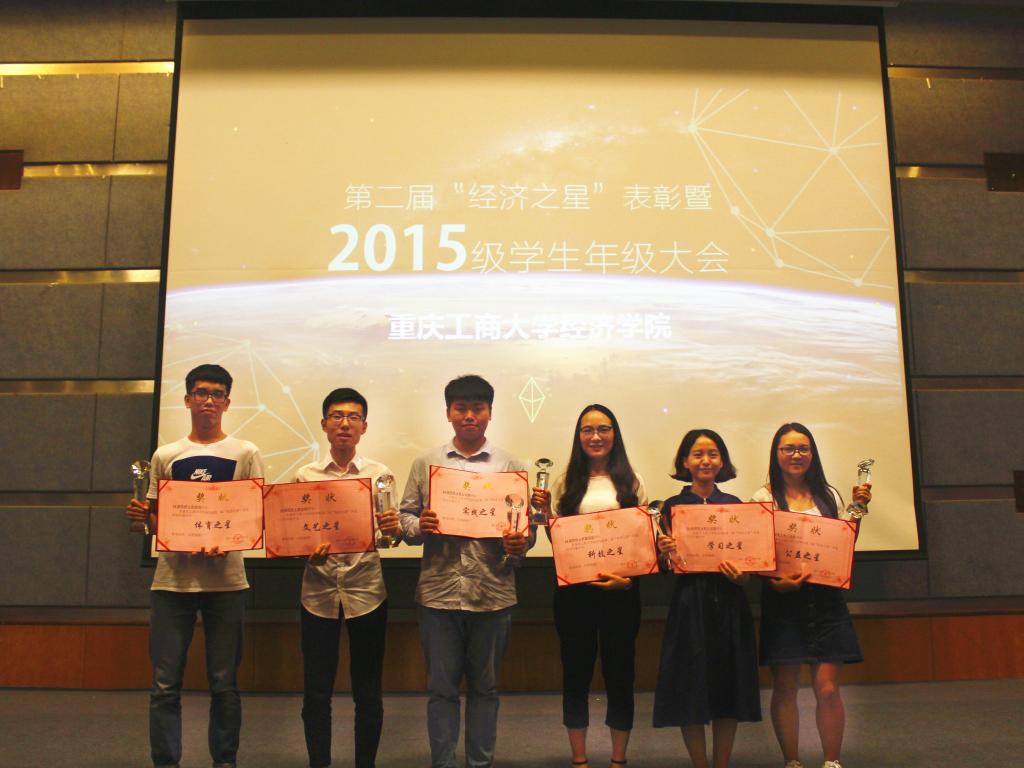 “经济之星”评选从2015年开始第一届,是太阳成集团tyc122ccvip为进一步加强和改进大员工思想政治教育,既充分尊重员工个性发展的需要,又切实发挥优秀员工的示范激励作用,树立榜样,表彰先进开展的一年一届的评选活动,今年经过班级推选、自愿申报、学院初评、微信投票、个人答辩,评选出本年度“经济之星”6 名,分别是“学习之星”吕佰洫、“科技之星”廖国甜、“实践之星”左诗棋、“公益之星”王兴粉、“文艺之星”张晔、“体育之星”高明。随着各获奖同学介绍视频的播放,同学们学习6位经济之星的成长历程及先进事迹,倍受鼓舞,现场响起阵阵热烈的掌声。