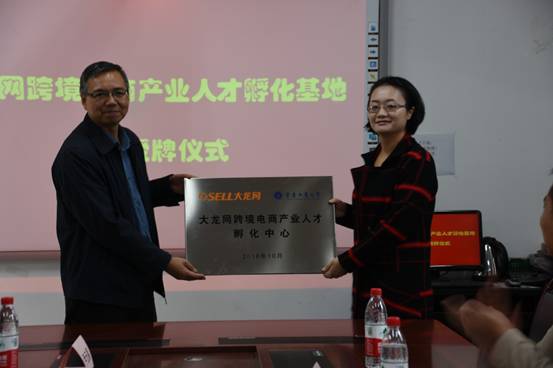 仪式在热烈的掌声中开始,张筱璐书记代表学院致辞,表示双方战略合作,将我校国际经济与贸易专业人才培养优势与企业的产业优势进行充分整合,有利于推进学院人才培养模式改革,提升专业办学水平与开放办学程度,有利于人才与企业的对接及企业发展战略的实现。高海鹰院长对我校、学院高效务实的合作表示了高度的认同与赞许,并对下一步的合作进行了期许与展望。接着,陈新力院长与高海鹰院长分别在协议上签字、交换文本,并共同为“大龙网跨境电商产业人才孵化基地”揭牌。