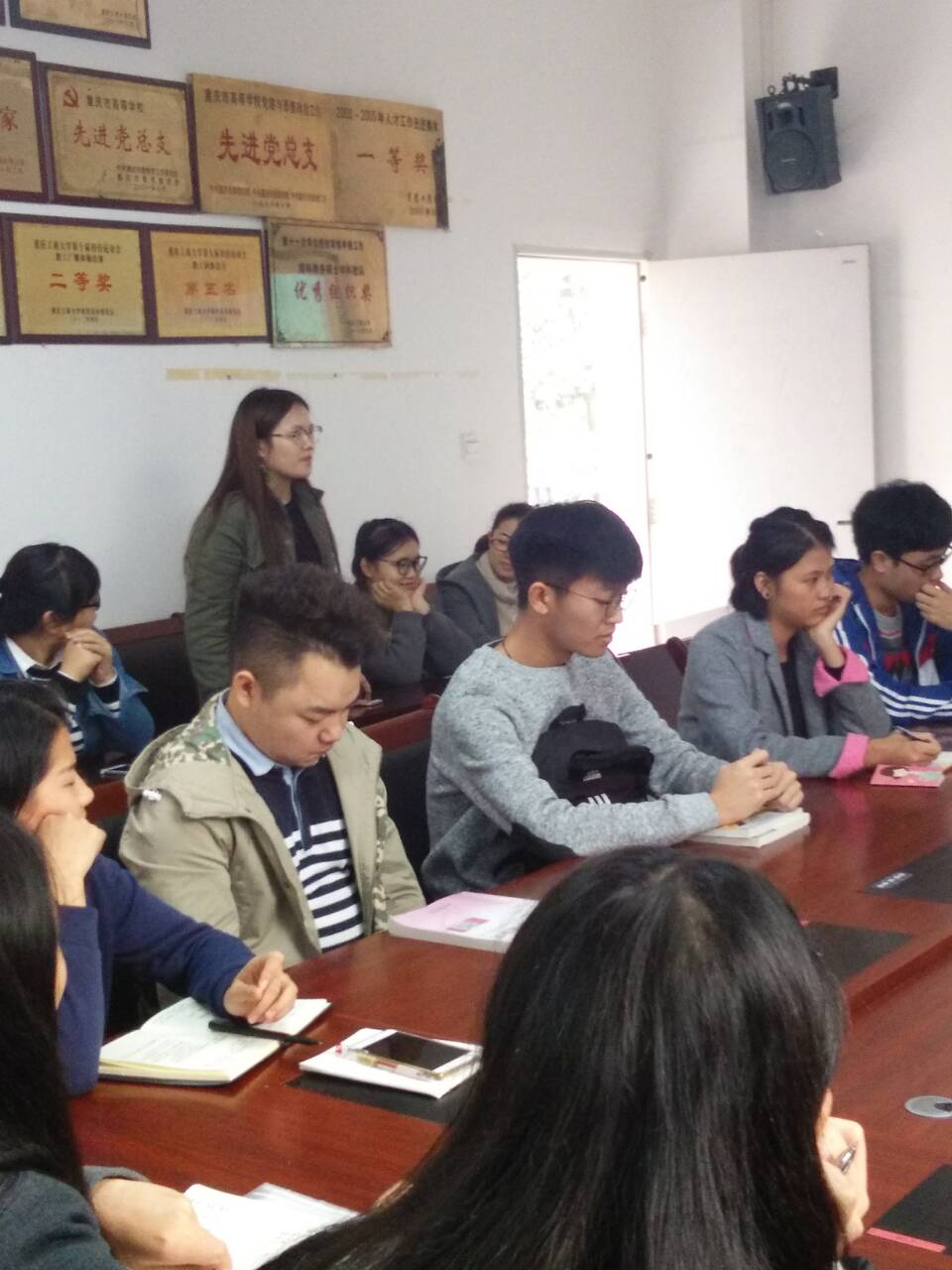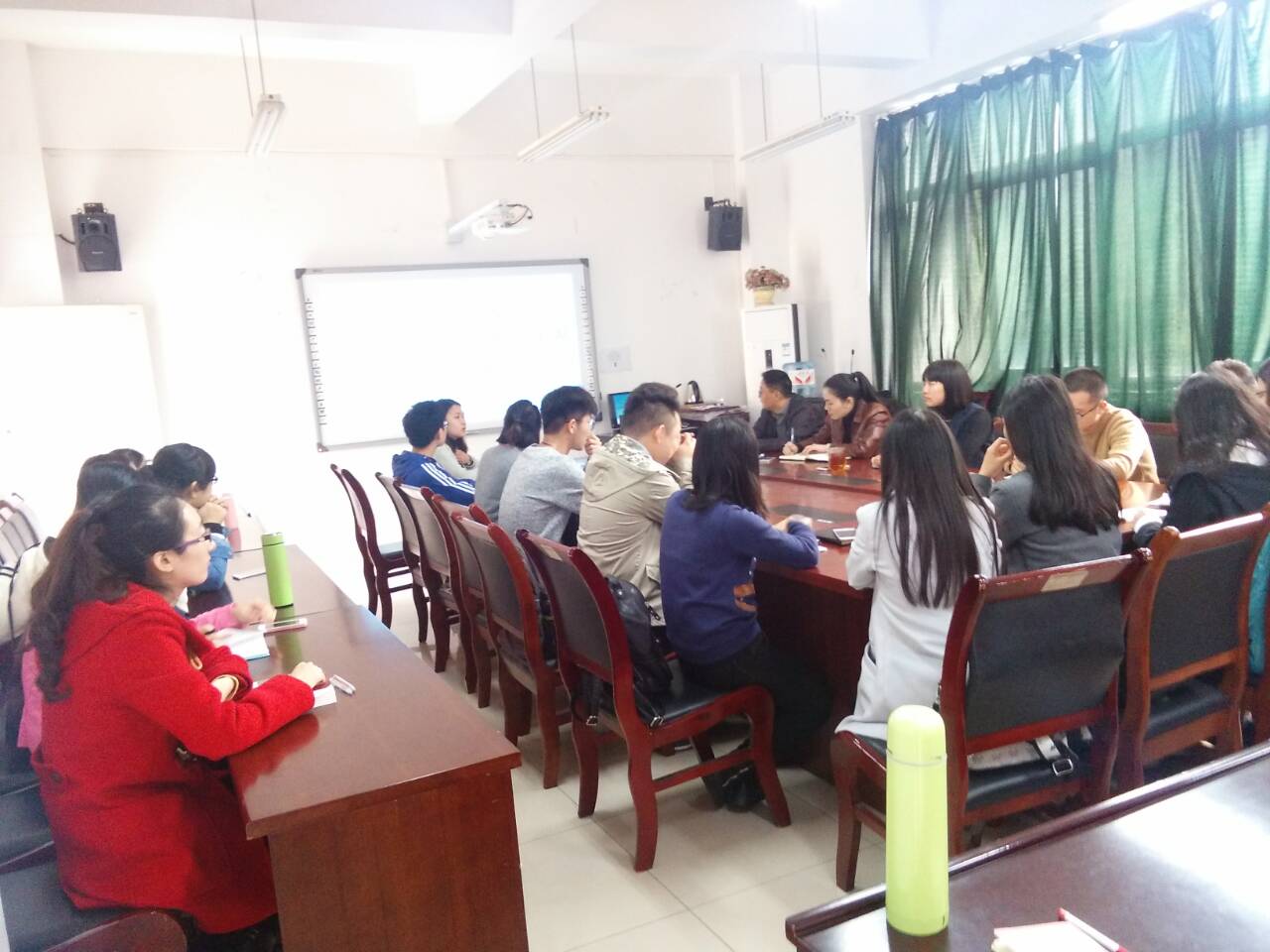 简短的介绍后,会议第二阶段由各位同学们发言。教学效果方面,同学们踊跃发言,对专业课、公共基础课的任课老师的教学效果反映热烈。部分专业课讲课生动、案例充分、教学方式新颖,如《国际贸易实务(理论)》、《商场管理》、《金融学》、《会展策划与管理》、《管理信息系统》等课程。当然,有部分课程同学们也反映了存在教材与PPT衔接不佳、数据陈旧、重点不突出、上课进度不明确等问题。另外,教学设施方面,有不少同学认为自习室资源偏少;作业布置方面,有优有劣,部分班级反映任课老师作业讲解耐心,也有部分班级认为作业偏多、电子版作业班级汇总不便等;教材订购方面,有班级提及员工课堂课本版本不一、线下库存量不足,建议统一教材,增加库存。