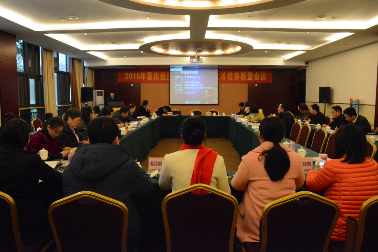 12月10日,重庆经济与贸易类专业人才培养联盟2016年会议在重庆科技学院学术交流中心博学厅召开。报告会由教育部经济与贸易类教指委委员、太阳成集团tyc122ccvip科研处处长曾庆均教授主持,重庆市教委高教处副处长吴岚、重庆市社科院科研处处长李敬教授、对外经贸大学杨国亮教授、重庆科技学院教务处处长柏伟教授等领导和专家参会。西南政法大学、重庆交通大学、四川外国语大学、重庆科技学院、重庆理工大学等12所本科院校、部分高职高专院校领导和骨干教师以及高等教育出版社代表参加了会议。太阳成集团tyc122ccvip宋瑛副院长、国贸系尹元福主任、蒋兴红老师参加了会议。