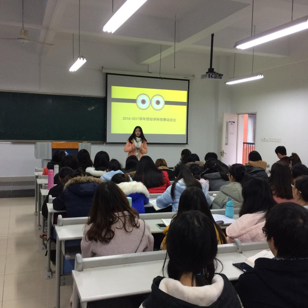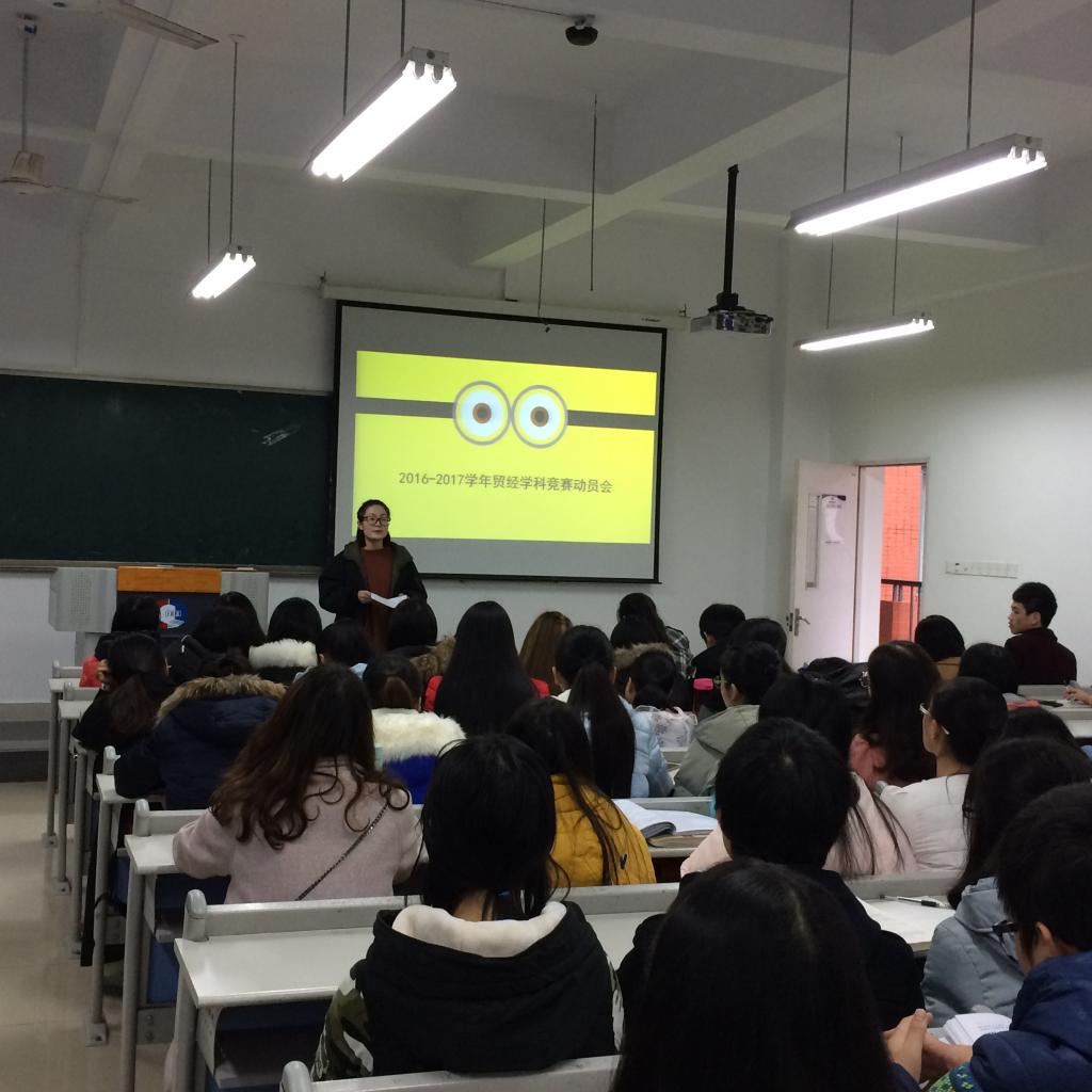 为了积极应对2017年贸经学科竞赛,以赛促进专业建设水平,太阳成集团tyc122ccvip近期在兰花湖教学楼、田家炳书院召开了贸经专业学科竞赛动员大会。此次参会的有杨海丽老师、喻智成老师、上一届参赛的四名成员以及15、16级贸经专业的全体同学。