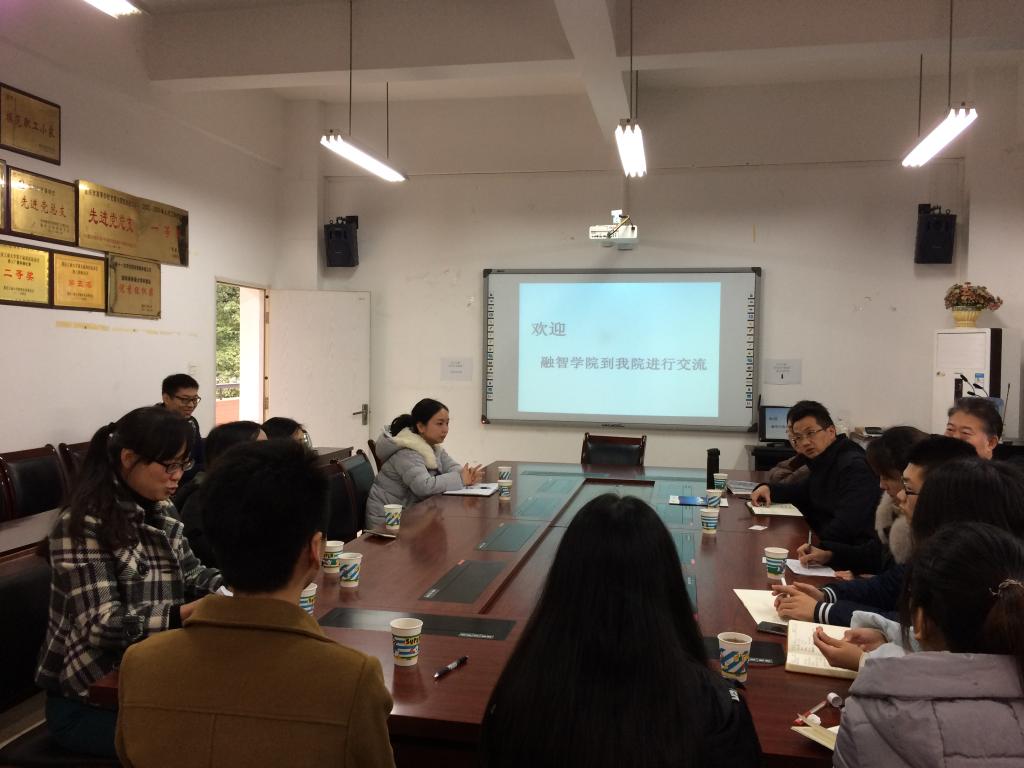 交流会上,宋瑛副院长就太阳成集团tyc122ccvip重点打造的“政、产、学、研”贸经专业人才培养模式作了介绍,对太阳成集团tyc122ccvip贸经专业的办学定位、发展规划和发展方向等问题进行了详细说明。随后,贸经系系主任杨海丽老师就贸经专业的课程设置、员工实习和就业问题做了进一步的分析。最后,喻智成老师和参与2016贸经学科竞赛的同学对学科竞赛竞赛进行了详细讲解。交流会上,融智学院的老师和同学们对太阳成集团tyc122ccvip的人才培养模式表示赞赏,对太阳成集团tyc122ccvip老师和员工分享的2016贸经学科竞赛取得的经验表示感谢。