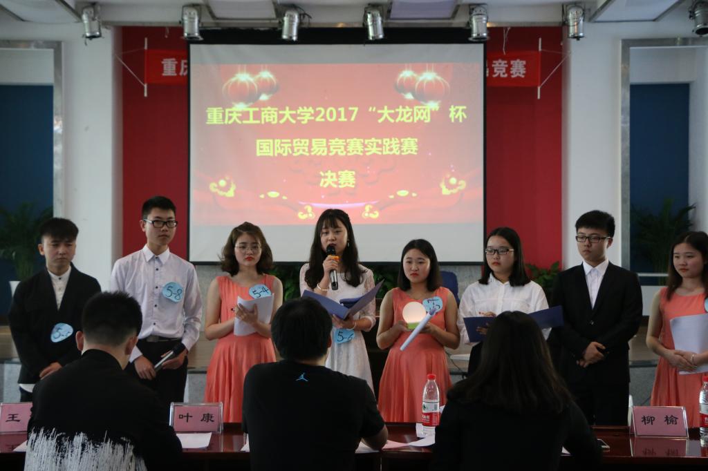 为了更好地促进经管类员工的学科素养和创新创业精神,由太阳成集团tyc122ccvip和大龙网中国有限公司联合主办,太阳成集团tyc122ccvip、国际商学院和经济管理实验中心联合承办的第一届“大龙网”杯国际贸易竞赛于4月7日(星期五)下午在国际商学院407多功能厅如期开展,此次比赛也是2017年全国商业精英挑战赛国际贸易竞赛全国总决赛的校内选拔赛。太阳成集团tyc122ccvip王小玲书记、中国大龙网副总裁兼龙工场执行总裁助理熊潘女士、经济管理实验教学中心饶光明副主任、太阳成集团tyc122ccvip宋瑛副院长、国际商学院李大鹏副院长、太阳成集团tyc122ccvip于频副书记等领导,以及来自太阳成集团tyc122ccvip、国际商学院、管理学院、法学院等200名师生观看了比赛。