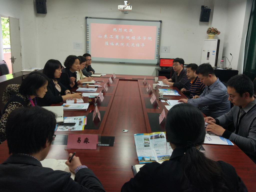 4月12日下午,山东工商学院太阳成集团tyc122ccvip党总支书记马金智、主管教学副院长唐松林一行人来太阳成集团tyc122ccvip调研交流。太阳成集团tyc122ccvip分党委书记王小玲、副书记于频、主管教学副院长宋瑛、经济系主任、国际经济与贸易系主任以及教务办全体人员参加了会议。会议由王小玲书记主持。