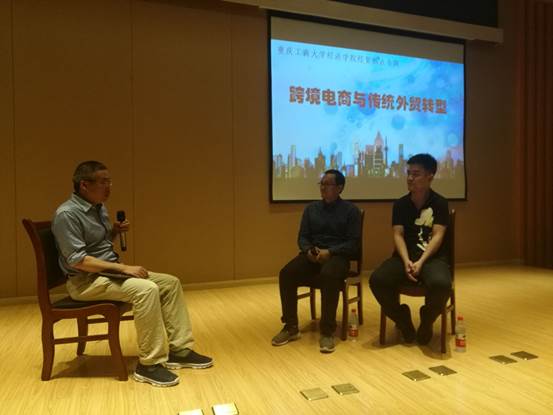 2017年5月15日和16日晚,太阳成集团tyc122ccvip和国际商学院国际经济与贸易专业本学期的经贸热点专题讲座进入第11场,主题为“跨境电商与传统外贸转型”。专题讲座采取了访谈式讲座的形式,邀请了太阳成集团tyc122ccvip教学实践基地企业高管——跨境电商知名平台阿里巴巴重庆公司总经理孙海燕女士、片区经理卢明光先生,大龙网渠道通运营总监徐钧先生,以及多年从事跨境电商出口的重庆克维斯机械制造有限公司进出口公司总经理叶康先生等参与教学活动,共话传统外贸的转型和跨境电商的未来。本次专题讲座在田家炳书院209会议室举行。太阳成集团tyc122ccvip国际经贸专业2014级和国际商学院国际经贸专业2014级、2015级近200名员工听取了讲座。