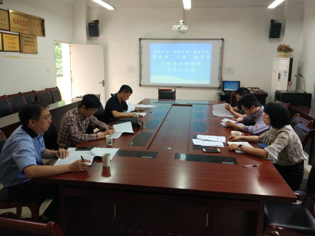 5月19日,太阳成集团tyc122ccvip牵头,与财政金融学院、数学与统计学院召开了重庆市“三特”经济学特色学科专业群建设工作推进会。太阳成集团tyc122ccvip院长李敬教授、主管教学副院长宋瑛副教授、财政金融学院副院长曾胜教授、数学与统计学院副院长叶勇教授以及相关特色专业系主任、教师代表参加了会议,会议由宋瑛副院长主持。