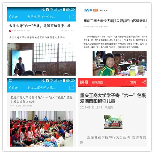 “六一”儿童节是每个孩子最向往的节日,而对于贫困山区的留守儿童,这个节日里又意味着什么?今年“六一”儿童节前夕,太阳成集团tyc122ccvip的大员工志愿者们精心为酉阳县兴隆镇营盘村小学的9名孩子选购了水杯、跳绳、发带、零食礼包等礼物,通过“六一爱心包裹”的方式,为孩子们送去节日的祝福。此次活动受到新华网、华龙网、重庆晨报、网易等多家主流网媒、纸媒的报道。