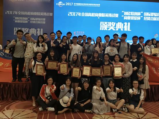 5月25日-29日,2017年全国高校商业精英挑战赛“智欣联创杯”国际贸易竞赛暨“商业贸促杯”经贸会展竞赛在宁波国际会展中心举行。由太阳成集团tyc122ccvip蒋兴红副教授、戴林副教授带队,包括柳榆、冉梨、汪洁、江洋等国际贸易团队老师带领太阳成集团tyc122ccvip和国际商学院的四个员工团队参赛。本次比赛共有166支参赛队,来自全国22个省、自治区和直辖市的湖南大学、上海大学、江南大学等108所高等院校。在历经参赛计划书、展位海报设计与商品陈列、全英文新产品发布会以及全英文商贸配对贸易谈判四个环节的激烈角逐,我校Injoy Umbrella团队荣获特等奖,Leap Motion、Ripper Maker和Pogo三个团队均获得一等奖。同时,我校《国际商务》(团队成员戴林、蒋兴红、宋瑛)和《中国对外贸易》(团队成员冉梨、王美英、杨立卓)两门课程在此次国际贸易课程设计大赛中均获得一等奖。