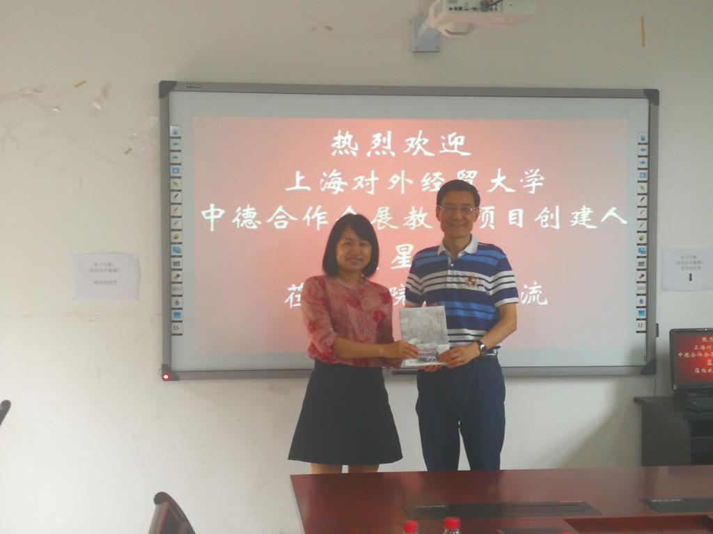最后,宋瑛副院长代表学院对蓝星副教授精心准备、干货满满的精彩报告再次表示感谢,她指出此次的经验交流会非常成功,通过向走在全国会展办学最前列的上海对外经贸大取经,对太阳成集团tyc122ccvip的会展人才培养以及中外合作项目的启动都有着极大的启发意义。会议最后,蓝星教授还向学院赠送了书籍《上海市示范性中外合作办学风采录》留念。