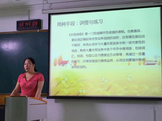 为了提升教学质量,推进教育教学改革,太阳成集团tyc122ccvip国际经济与贸易系全体专兼职教师于2017年9月14日开展了为期一天的说课、课堂教学研讨教研活动。本次活动分说课和课堂教学演练两个阶段。第一阶段的说课活动涉及国贸系13位专兼职教师18门次课程,老师们各自介绍了自己对所承担教学任务的课程设计,并围绕各课程的性质、课程在专业课程体系中的地位、课程的培养目标及其对本专业人才培养的作用和意义、课程内容体系、课程教学组织情况等方面展开讨论和交流。第二阶段有8位教师进行了课堂教学演练,大家就授课内容、教学组织、过程考核等方面进行了探讨与交流。