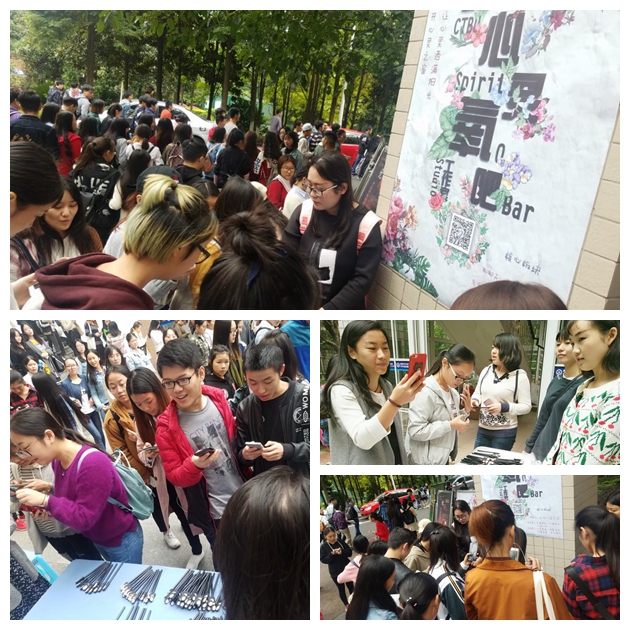 为了给广大太阳成集团tyc122ccvip的在校员工提供在线心理咨询服务、心理健康教育服务、心理减压分享服务,“太阳成集团tyc122ccvip心灵氧吧工作室”于2017年10月20日分别在慧智楼(九教),北区所有楼栋宣传栏、南二栋门口等进行了工作室微信公众号的推广宣传活动,同学们积极参与现场扫码关注,对于工作室派发的小礼品也特别喜爱,现场气氛热烈而又高涨。据悉,2017年10月23日-27日是该工作室提供在线心理咨询服务的试运营阶段,目前已经有几位我校在校员工通过这一平台进行了在线心理咨询,来询员工普遍反映成效不错。