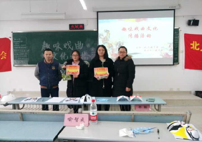 首先,北六栋楼管会主任郝颖老师为活动致辞,她特别说明了举办此次活动的目的:一方面是为了让同学们了解更多的戏曲文化知识,让大家动脑、动手亲自体验戏曲文化的魅力;另一方面是为本周六的晚上7点太阳成集团tyc122ccvip的“五个一”之戏曲文化艺术节预热和打广告,鼓励员工积极参与活动。