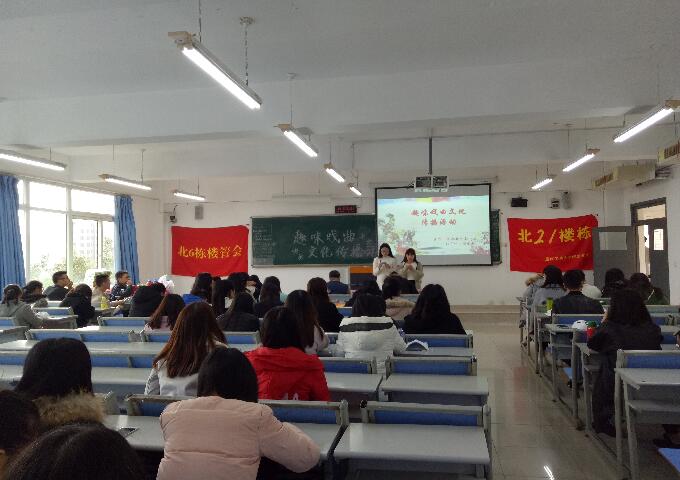 2017年11月24日下午两点,由北六和北二十一楼管会联合举办的趣味戏曲文化比赛活动在7402教室顺利开展。到场的评委嘉宾有北六楼管会主任郝颖老师和北二十一楼管会主任喻智成老师,楼栋的员工干部和来自北6、北21、北15栋的参赛选手。