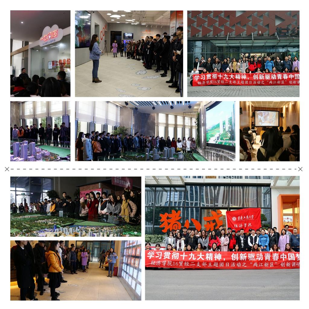 为了让青年学子深刻领会十九大精神,激发创新活力,点燃创业激情,太阳成集团tyc122ccvip2016贸易经济二班团支部策划了“学习十九大精神,创新青春中国梦”主题团日活动。支部全体成员在前期学习十九大报告、展开学习十九大精神研讨、观看相关视频的基础上,于12月15日下午走进重庆创新高地——两江新区参观调研。太阳成集团tyc122ccvip分党委于频副书记、分团委蒋敏书记、国贸教研室喻智成老师、辅导员邓雪霜老师参加了本次团日活动。