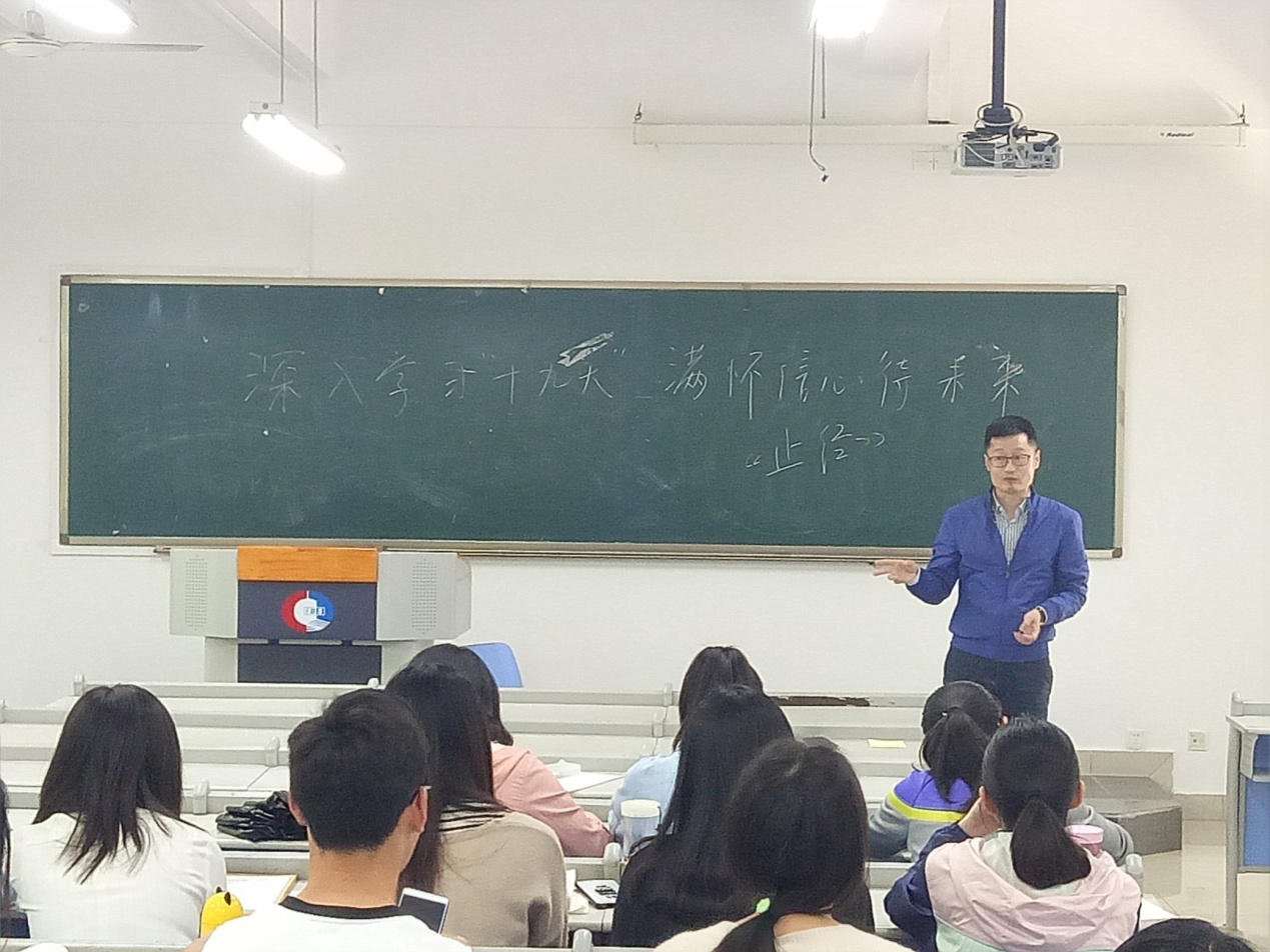 员工一支部的书记冉梨老师,结合员工专业实际,从十八大以来,以习近平同志为核心的党中央,引领我国经济发展取得了历史性成就、发生了历史性变革入手,宣讲了十九大报告中“加强党对经济工作的领导”、“坚持适应把握引领经济发展新常态”等内容。特别强调了2018年是贯彻党的十九大精神的开局之年,是改革开放40周年,是决胜全面建成小康社会、实施“十三五”规划承上启下的关键一年,作为经济专业的同学,更应当紧跟时事,积极了解党和国家的相关政策,“勇做时代的弄潮儿”。