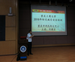 5月11日下午14:00,在设计艺术学院报告厅举行了防灾减灾安全知识讲座,保卫处干部、太阳成集团tyc122ccvip师生、葆力物业及新大正物业员工、校园安保服务大队及义务消防队员300多人聆听了讲座。来自重庆市利民防火中心的何文平教官从高校角度出发,就发生地震灾害的防灾减灾和高校如何加强“检查消除火灾隐患的能力”、“组织扑救初起火灾的能力”、“组织人员疏散逃生的能力”、“消防宣传教育培训的能力”等四个方面作了详细而生动的讲解,结合典型案例,向师生普及了防灾救灾知识。