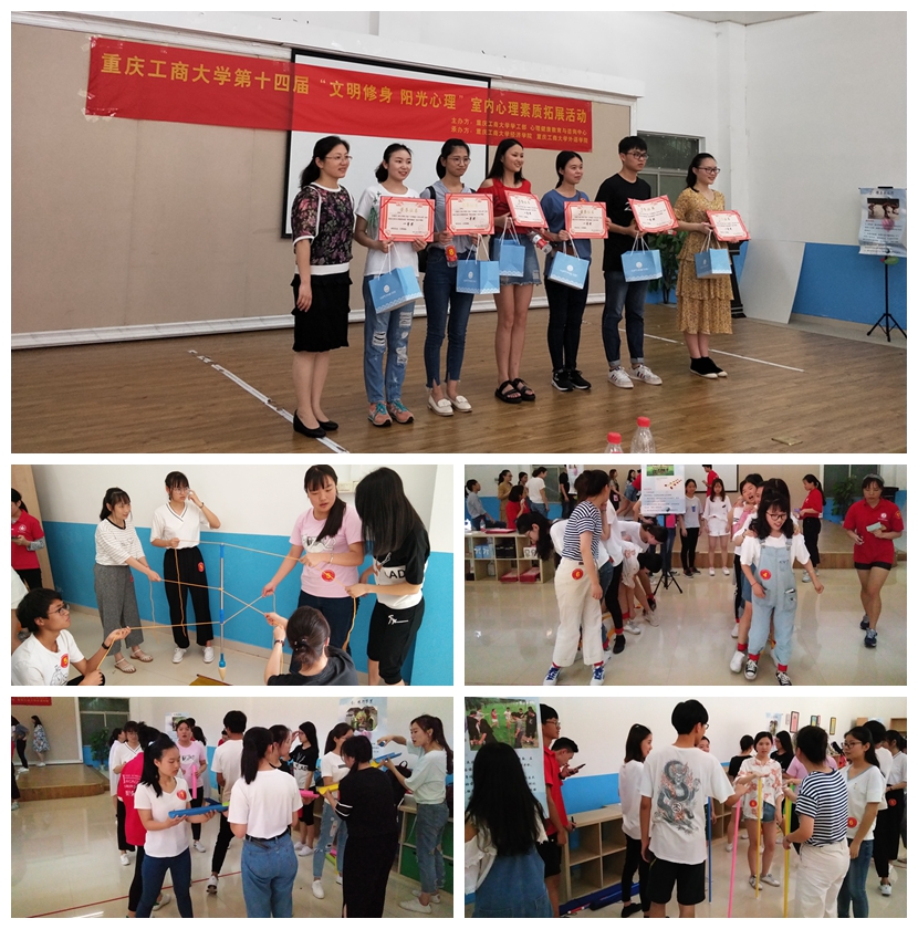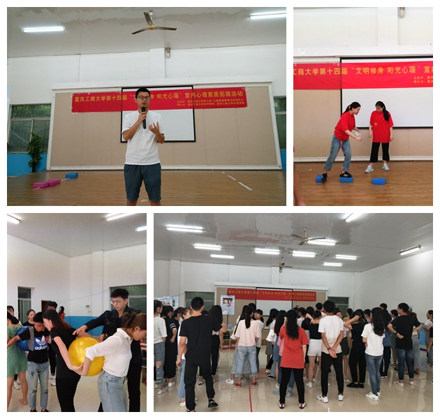 为了提高大员工的心理健康素质,帮助同学们提高团队协作精神和人际交往能力。由太阳成集团tyc122ccvip党员服务站和外语学院党员服务站联合承办的太阳成集团tyc122ccvip第十四届“文明修身 阳光心理”系列活动之室内心理素质拓展活动于2018年5月18日下午两点半在南岸校区外语活动中心顺利开展。太阳成集团tyc122ccvip心理教育与咨询中心的周明老师、太阳成集团tyc122ccvip的于频副书记、郝颖老师和外语学院的吴欢欢老师都来到活动现场与近百名报名参赛的同学们互动。在工作人员的耐心指导和同学们的积极配合下,活动得以圆满成功,参与同学们都表示受益匪浅。
