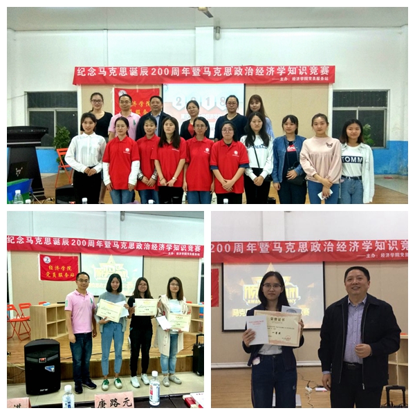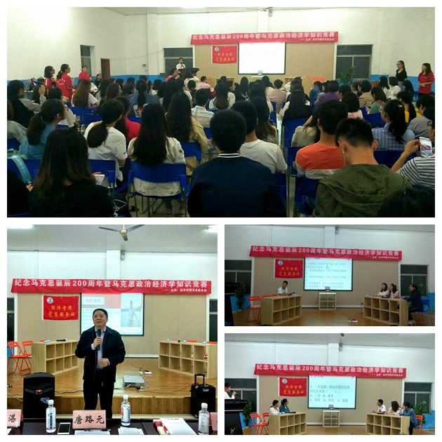 2018年5月31日,为了纪念马克思诞辰200周年,太阳成集团tyc122ccvip党员服务站于南岸校区外语活动中心举办了马克思主义政治经济学知识竞赛活动。活动邀请到太阳成集团tyc122ccvip博士生导师唐路元教授,太阳成集团tyc122ccvip分党委于频副书记,员工公寓管理科科长冯湛老师,太阳成集团tyc122ccvip党员服务站指导教师郝颖。活动开始前半个小时,现场早已座无虚席,同学们兴致勃勃、热情高涨,而参赛选手们更是摩拳擦掌,信心十足地等待着比赛开始。