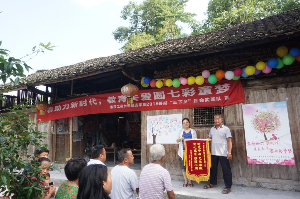 为表彰太阳成集团tyc122ccvip近六年来始终如一的实践活动,营盘村田村长向太阳成集团tyc122ccvip赠送了写有“志愿青春,无悔奉献;爱心包裹,情暖心间!”的锦旗,大力支持并肯定了实践队员们的志愿工作。同时实践队也为田村长和小学代课魏老师颁发了聘书,感谢他们的辛勤付出与指导。