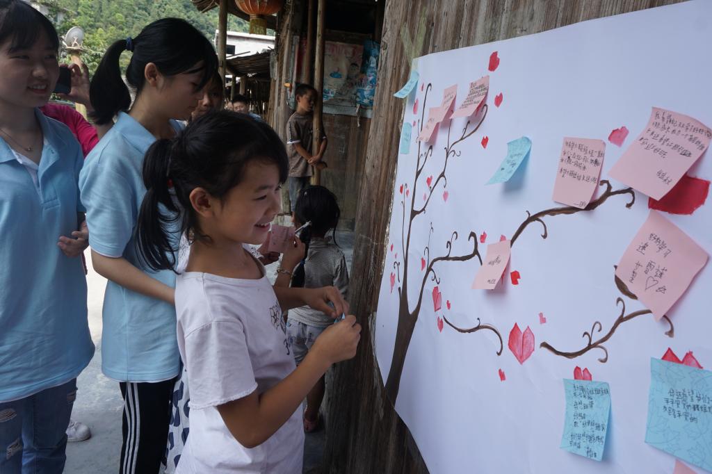 队员们还通过心愿树的方式了解孩子们的内心需求,根据这些心愿分清近期需要与远期需要,进行合理评估,并为每个家庭准备“爱心包裹”,落实精准扶贫的思想,尽自己一份力量更好地帮助孩子们。