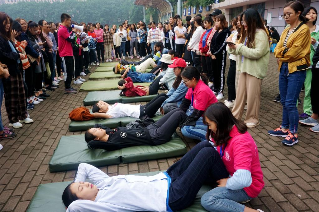 在紧张刺激的径赛结束之后,男子的引体向上,女子的仰卧起坐以及体现班级默契配合的长绳项目接连进行。迎面接力更使运动会达到高潮,在场的每位同学都在拼命的呐喊着,跑道上的运动员们上演速度与激情,运动场上加油呐喊声此起彼伏。一个个集体项目牵动着所有同学的心,极大的提升了17级各班同学的班级凝聚力。