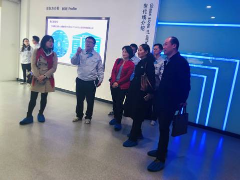 在孙总的陪同下,王书记一行参观了京东方主打产品的展示间,对京东方的智慧触摸屏的发展变迁进行了解,触摸屏的发展历史及现代领先技术让人惊叹。孙总还就公司显示和传感器件、智慧系统、健康服务等方面的业务进行了简要介绍。随后双方在京东方重庆公司接待会议室进行了合作磋商。大家就员工实习、建立移动课堂及京东方员工培训等方面进行了深入交谈,达成初步合作意向,在经过深入研究后将积极组织落实。