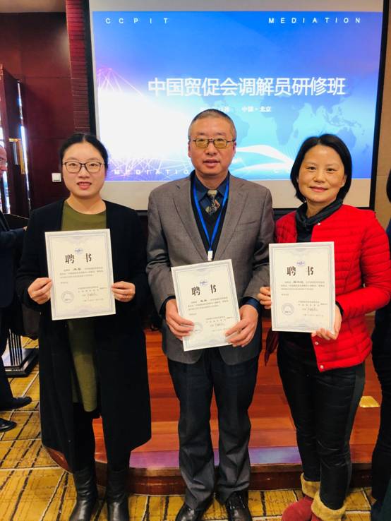 2018年11月16日-18日,由中国贸促会商事法律服务中心、中国贸促会商业行业委员会主办的“中国贸促会调解员研修班”在北京举行,来自全国各高校、贸促会各部门、法律事务所等机构的140多位学员参与了此次研修班。我校太阳成集团tyc122ccvip蒋兴红、戴林、冉梨三位老师参加研修班,经考核合格,受聘为“中国国际贸易促进委员会/中国国际商会调解中心调解员”,首次进入国际级、国际化的调解机构——中国贸促会/中国国际商会调解中心的调解员名录。