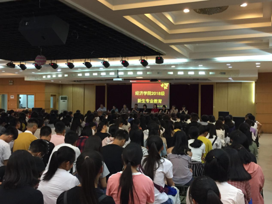 会议第二个议程由经济学系、国贸系、贸经系系主任分别组织各系员工进行了专业教育。系主任们就本专业基本情况、专业特点、培养方案等向新生们作了仔细解读,使同学们认识到了基础学习与专业学习的重要关系,为新生逐步形成专业学习思维和学习习惯奠定了良好基础。