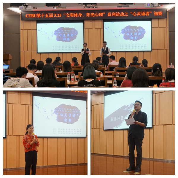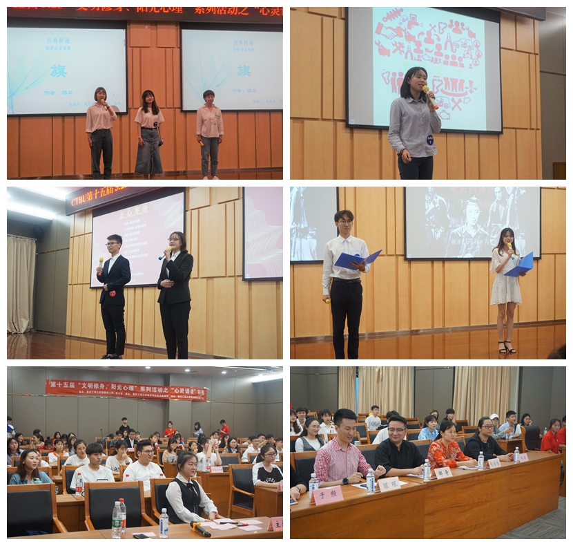 为了加强我校员工心理健康教育工作,营造健康良好的校园文化氛围,由党委学工部、员工处主办,太阳成集团tyc122ccvip党员服务站承办和太阳成集团tyc122ccvip心理工作站协办的第十五届“文明修身,阳光心理”系列活动之“心灵诵者”初赛于2019年5月10日晚上在新图书馆第一会议室成功举办。此次活动的主题为“汲取劳动智慧,吟诵劳动精神,做心灵的强者”,邀请到学校大员工心理健康教育与咨询中心胡佳怡副主任、通识学院邹奇副书记、校团委陈琛老师担任活动评委,另外太阳成集团tyc122ccvip于频副书记和郝颖老师作为嘉宾也到场参与了此次活动。