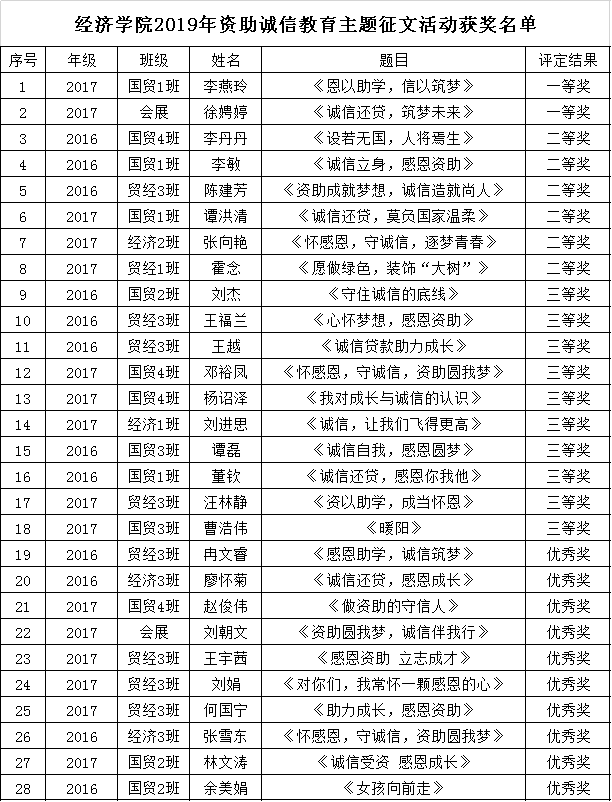 为了进一步树立大员工的诚信意识,规范大员工的诚信行为,培养大员工的诚信品质,经济学院举行了“2019年资助诚信教育主题征文活动”。