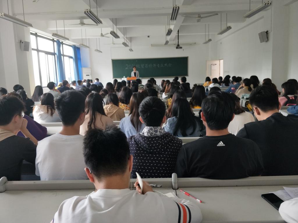 考研方面,杨海丽老师指出,在今年的考研中,英语和数学的分数普遍较高,因为参加考研的95后,从小接触英语,英语基础良好,数学基础也有所提升。其次,她提出我们在选择考研方向的时候,一定要结合自身实际情况。然后指出我校今年在考研招录中存在着重大变化,指明今年我校考研录取以第一志愿为准,并为我们讲解了今年考研调剂案例,指出调剂也十分困难。同时提醒我们要注重面试成绩,因为考研面试成绩在综合成绩占50%甚至70%。最后建议我们要仔细选择考研学校,学校的报录比和保研、学校政策等都是我们选择的重要参考指标。