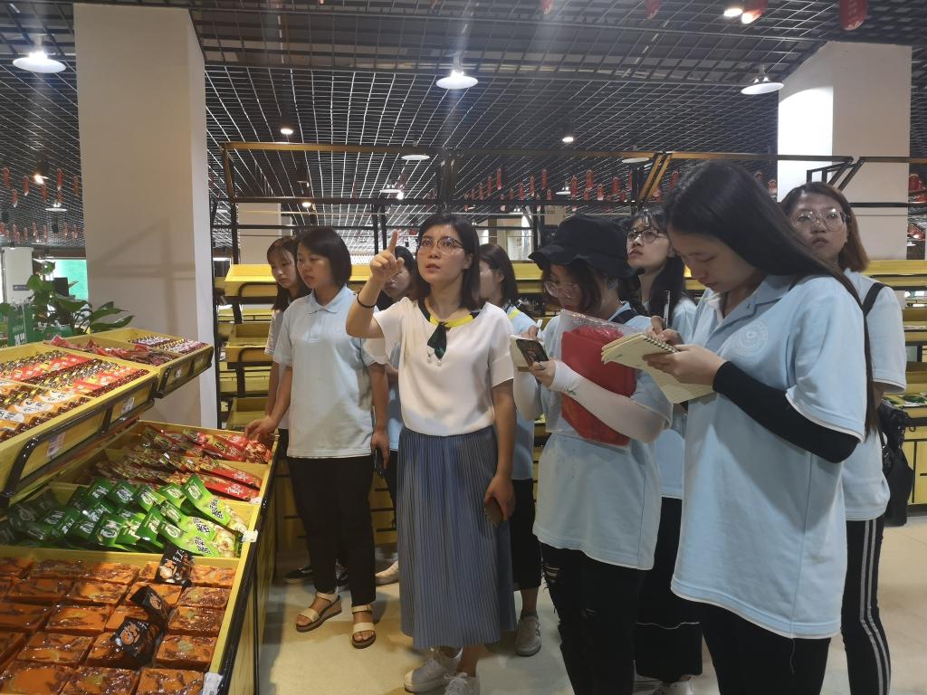 实践队走访酉阳农特产品展销中心,了解了农产品流通渠道以及销售方式。酉阳农特产品展销中心,由桃花源旅投集团投资建设和经营,是酉阳县重要的农特产品线上线下销售平台,也是“旅游+扶贫”重点示范项目。展销中心的产品共有10大系列,包括:青艾(青蒿和艾莴)系列、大米系列、食用油系列、苦荞系列、干货系列、酒类系列、茶叶系列、调料系列、文创系列、休闲食品系列。其中酉阳青蒿产品、蜂蜜、野生山茶油、薏米、苦荞茶、藤茶均为“酉阳地理标志性产品”,土家司南酒为“非物质文化遗产”,青蒿粑粑为“武陵山区十大名小吃”。通过参观展销中心的各种特色产品以及负责经理的详细讲解,实践队员深刻的了解到了酉阳特色农副产品,并且更深入地了解到酉阳县脱贫攻坚的方法。展销中心将景区游客和市民转化为消费顾客,实现旅游商品销售总量快速增长,拉动农业农村经济发展,加快脱贫攻坚进程。