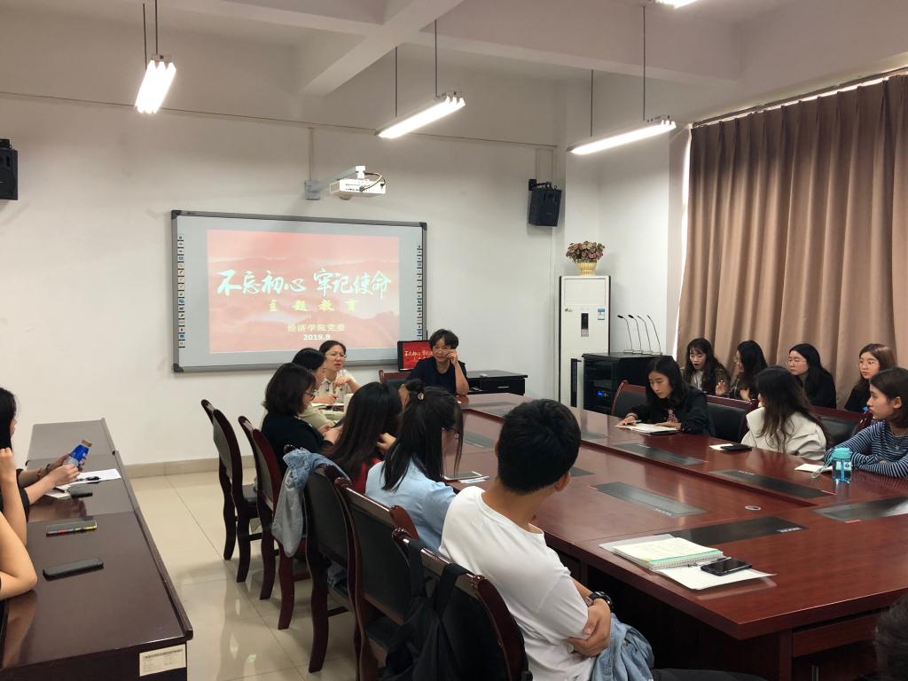 最后,一支部书记郭春花老师和二支部书记蒋敏老师带领全体员工党员开展了“不忘初心,牢记使命”的主题教育。要求我们年轻的党员同志应不断学习党章党史、学习习近平新时代中国特色社会主义经济思想,在理论学习和实践活动中做到“守初心、担使命,找差距、抓落实”。并结合自己的专业和个人成长规划,不断提升自己的综合能力。