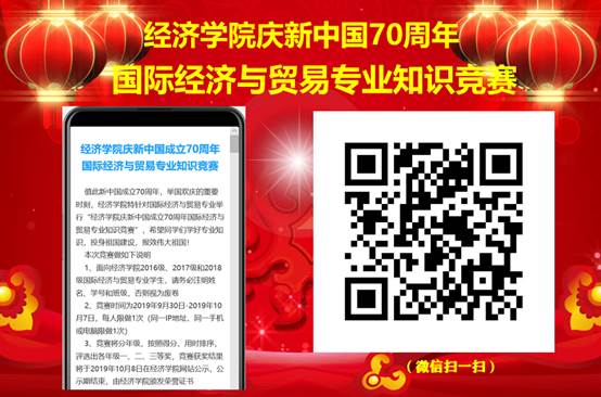 为引导员工深入了解中华人民共和国成立70周年的伟大历程和辉煌的经济建设成就,激发同学们的爱国热情,同时提高同学们专业理论水平,太阳成集团tyc122ccvip自9月30日起,分别开展了贸经、会展、国贸以及经济学四个专业的知识竞赛。本次知识竞赛由各专业的系主任主持开展,覆盖学院全部专业、2017级和2018级全体同学以及2016级部分同学。本次专业知识竞赛采用现场答题、微信答题、问卷调查等线上线下相结合的方式开展,形式多样,内容丰富。在各现场答题赛场,比赛紧张有序地进行,同学们一边思考,一边快速作答。在微信答题赛场,新颖的答题方式引起了同学们的浓厚兴趣,大家纷纷研究其中的知识点和答题技巧,想在比赛中拔得头筹。在问卷调查赛场,颇具专业性的问卷,让同学们不敢懈怠,谨慎小心地选择每一题的答案。每场竞赛均是专业性和知识性相结合,同学们踊跃参与,赛后积极讨论,还不时翻阅书本,对竞赛中的知识点进行进一步的巩固,此次专业知识竞赛取得了圆满成功。